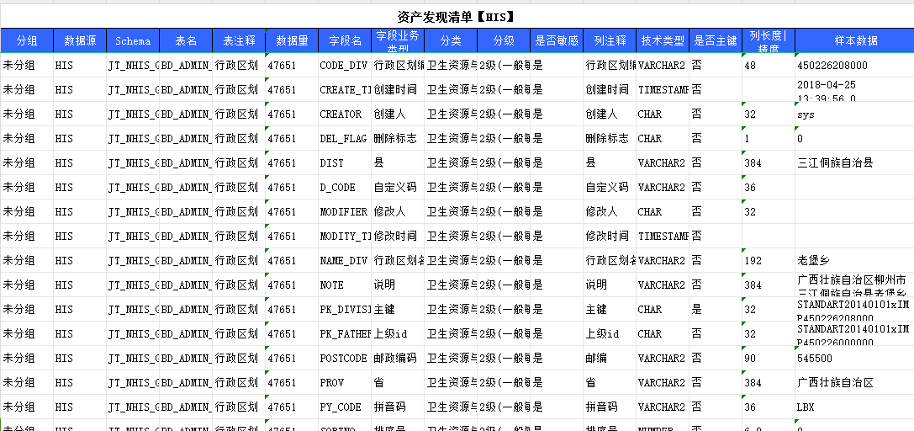 梳理和識別HIS系統數據表、數據項、數據文件等數據內容,整理和識別已收集的數據資源,對數據進行合并統一,形成數據資源列表,為后續數據分類分級工作做好準備。具體包括: