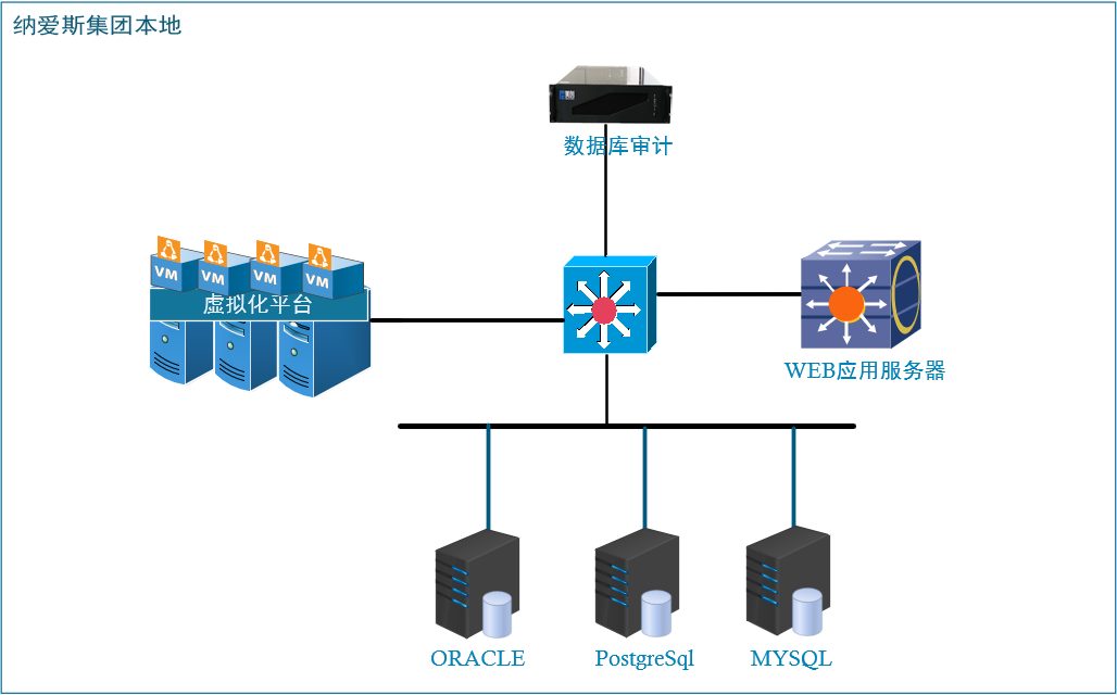納愛斯集團主要數據庫類型以ORACLE、PostgreSql、MYSQL為主,同時集團業務主要以B/S架構為主分布在集團總部物理機房與虛擬化環境中。