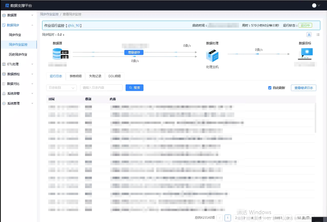 數據支撐平臺作業運行界面