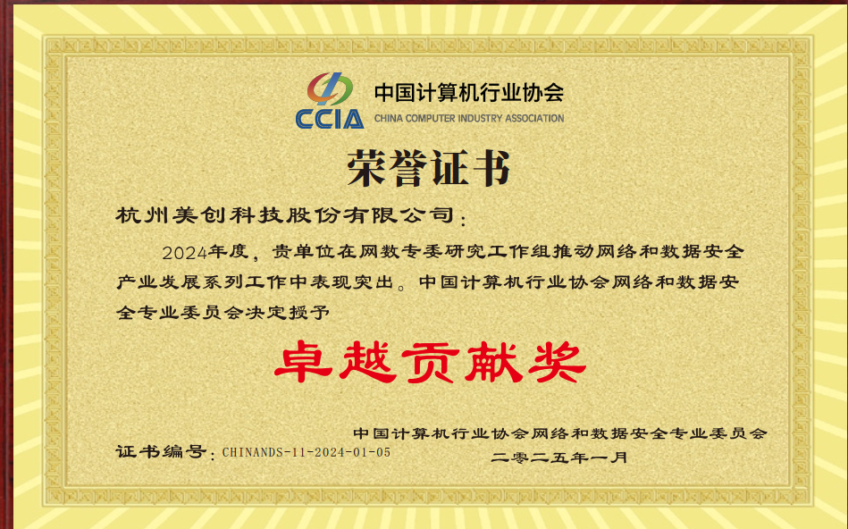 美創(chuàng)科技獲中國計算機(jī)行業(yè)協(xié)會網(wǎng)絡(luò)和數(shù)據(jù)安全專業(yè)委員會“卓越貢獻(xiàn)獎”