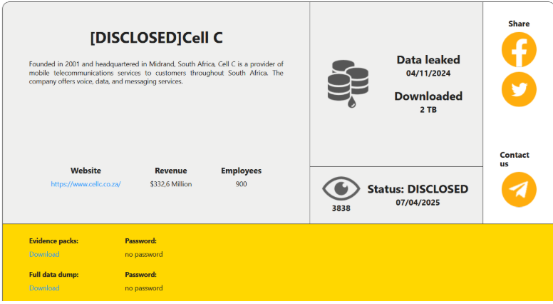 南非電信巨頭Cell C遭黑客組織數據勒索