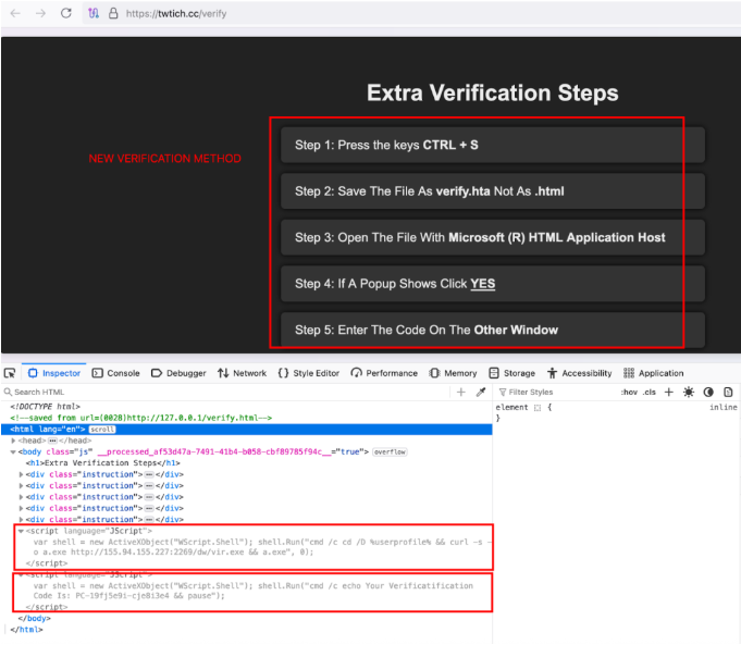 CloudSEK報告發(fā)現(xiàn),Epsilon Red勒索軟件正通過偽裝成Discord、Twitch與OnlyFans的驗證頁面進行傳播。攻擊者使用帶有惡意腳本的.HTA文件和ActiveX技術,誘騙用戶執(zhí)行命令,后臺靜默下載并運行勒索程序。偽頁面還展示拼寫錯誤的“Verificatification”提示,混淆受害者判斷。該活動基礎設施涵蓋多個偽造域名及IP,另發(fā)現(xiàn)Quasar RAT遠控程序。