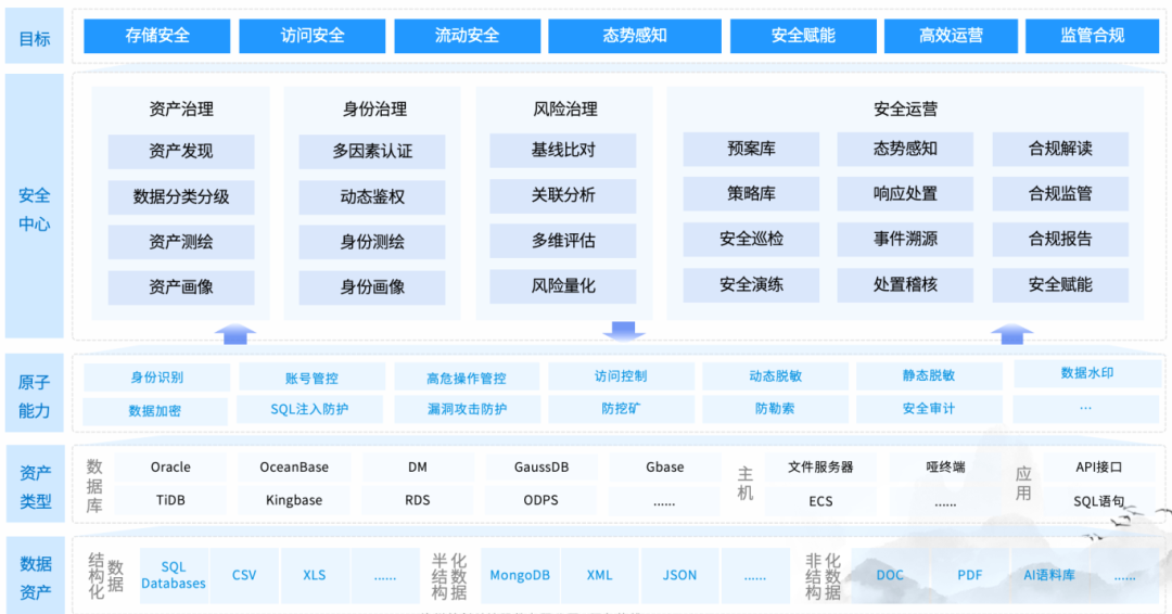 美創數據安全一體化平臺(DSC),采用安全中心+能力端的架構,將單個的數據安全能力做成功能模塊的方式嵌入數據安全一體化平臺,打造了一個中心整合防護多元管理能力,簡化安全管理操作,提高數據安全事件處置效率。