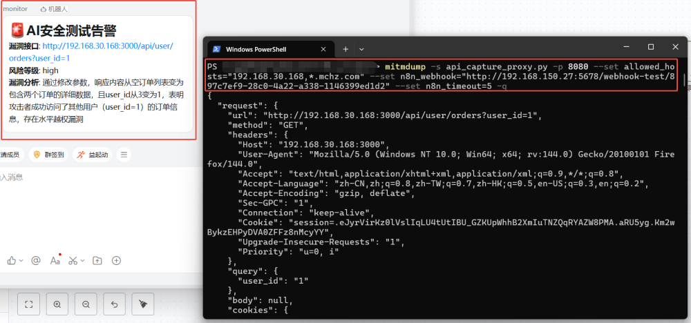 如此以來,就對整個檢測系統進行了解耦,N8N作為檢測中樞,其中的所有模塊都可以復用,如流量解析、請求重放、去重、告警通知等,如果想要測試其他漏洞,只需修改AI節點中的提示詞即可,從維護和擴展上來說,都非常的方便直觀。對于測試人員來說,不需要知道檢測系統怎么啟動運行,只需要啟動一個代理接入即可;對于設計人員來說,只需要在N8N工作流平臺中進行流程設計即可。這樣的模式對于集成到CI/CD會更有優勢。
